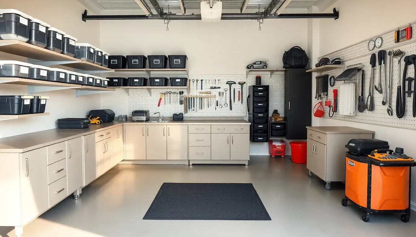 Clear labeling ensures users can find items quickly, minimizing downtime during projects. Garage cabinets provide concealed storage, helping maintain a clean look. When considering flooring, modular tiles or rubber mats offer protective measures while improving aesthetics.