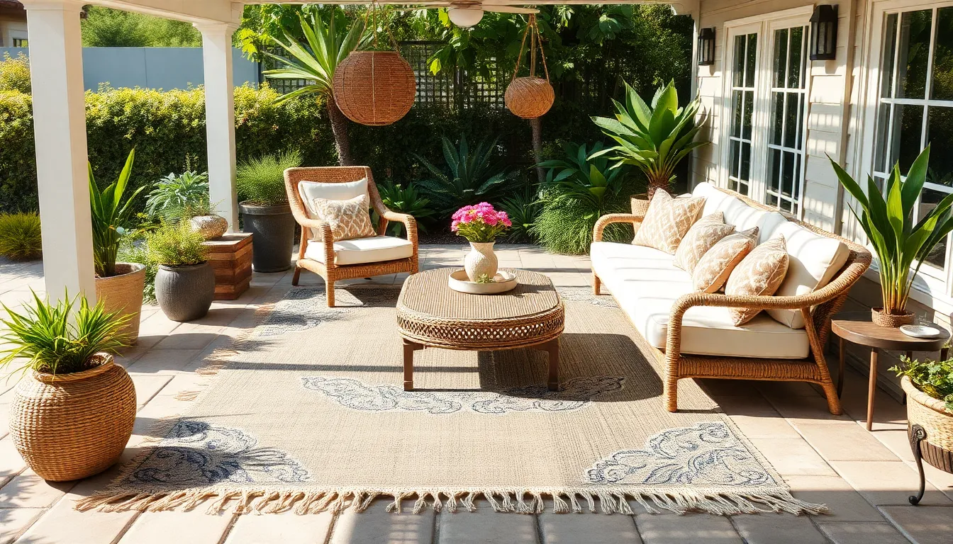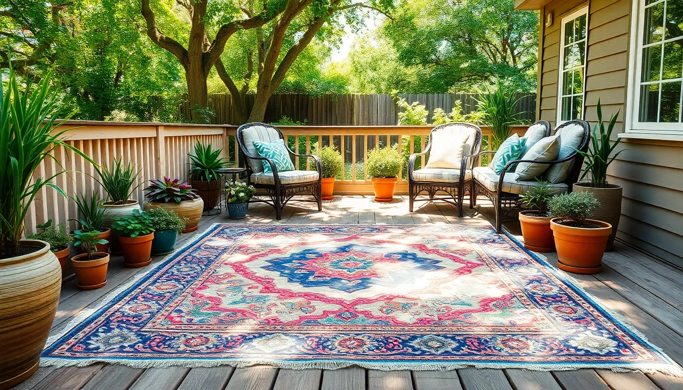 Natural fibers like jute, sisal, and cotton provide an organic look that blends well with outdoor settings. These materials offer softness underfoot, creating a cozy atmosphere. Jute is particularly popular; it’s sustainable and biodegradable, making it an eco-friendly choice. Sisal boasts strength and resilience, allowing it to withstand heavy foot traffic while maintaining its appearance. However, natural fiber rugs may not be as resistant to water as their synthetic counterparts, requiring more care in wet environments.